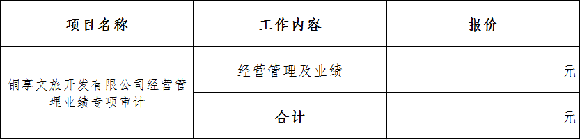 針對貴公司對銅享文旅開發(fā)有限公司經(jīng)營管理業(yè)績專項(xiàng)審計(jì),我所報(bào)價(jià)如下: